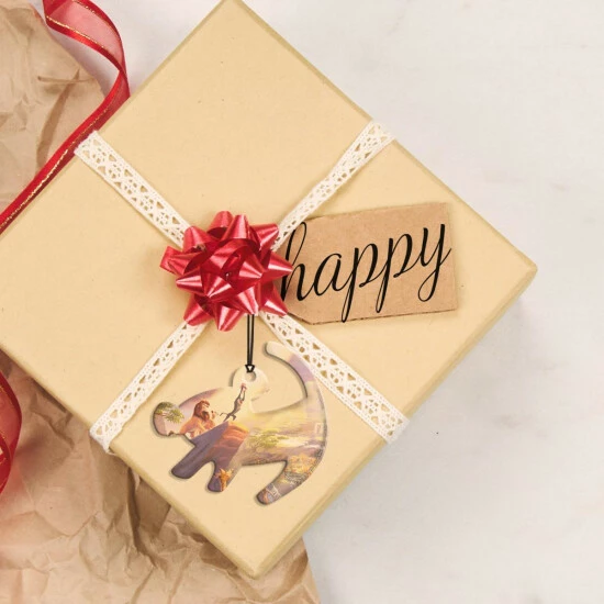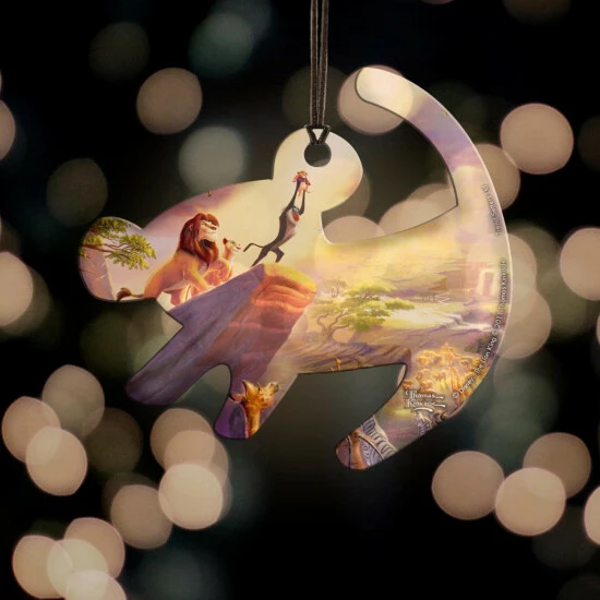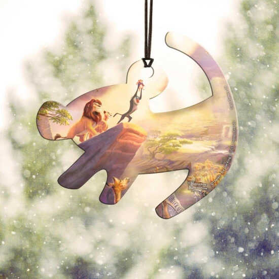 Disney’s The Lion King has many iconic images but perhaps the most memorable is the one featured in this officially licensed hanging acrylic decoration by Thomas Kinkade. High atop the cliff, overlooking Mufasa’s Kingdom, Rafiki dramatically raises and presents the baby, Simba.This light-catching, scratch and fade-resistant acrylic decoration is in the shape of Rafiki’s drawing of Simba. Perfect for any Disney lover’s Christmas tree or as year-round décor.